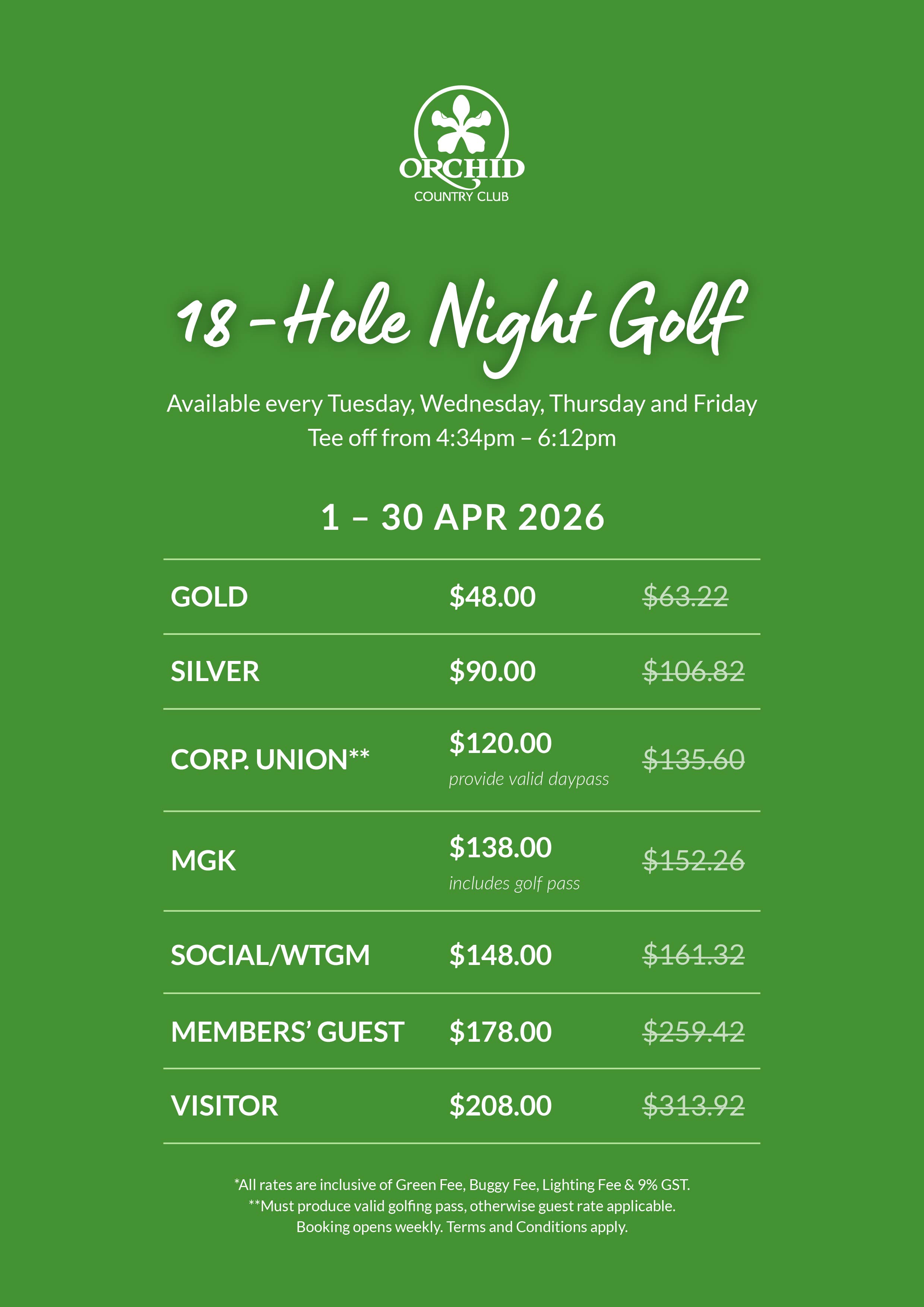 Tee off every Tuesday, Wednesday, Thursday & Friday night